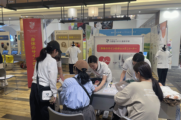 本校のことをより多くの方に知っていただくため、看護科・普通科の授業体験ブースや進学相談ブースを設けました。