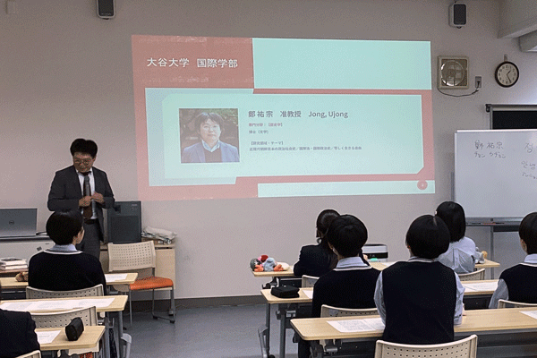 大谷大学より鄭祐宗(Jong, Ujong)先生にお越しいただき探究の時間に講義を行っていただきました。