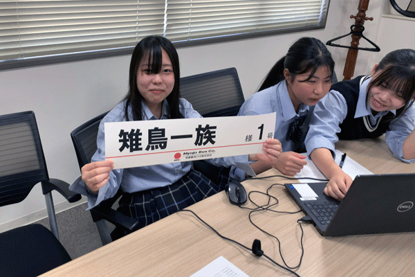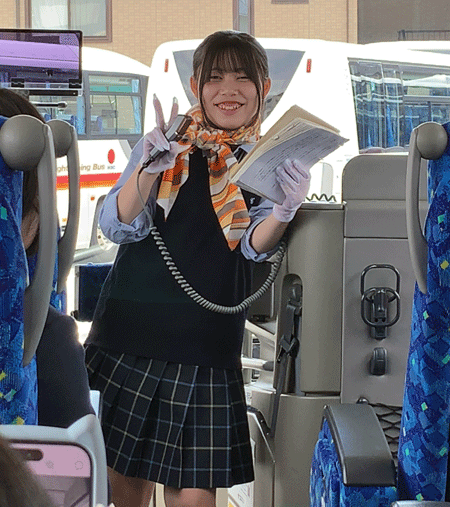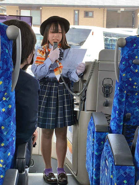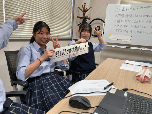 昨年もお世話になった明星観光バス株式会社様を訪問し、運転士、バスガイド、事務職の仕事内容の説明をお聞きしたあと、実際に体験させていただきました。運転技術の披露や、ガイドさんが実際に覚えているマニュアルを見ながらガイド体験をしました。事務職の説明では運行管理やステッカー作成など、普段目にすることがない業務についても知ることができました。