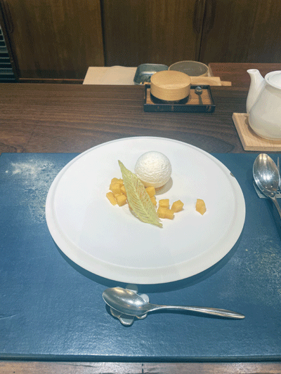 7月16日(水)、普通科3年調理・パティシエ系の校外授業を実施しました。京都の食文化を学ぶ目的で錦市場を散策し、「未完」ではアシェットデセールを体験してきました。 未完を訪問するのは今年で7年目になります。目の前で仕上がる様子を見ることができ、シェフの技術や知識の豊富さに驚かされました。盛りつけ方やお皿、お店の雰囲気の全てが料理の味に影響をしていると感じました。大変勉強になりました。