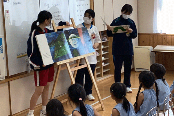 普通科「子ども保育系」では、7月15日(火)は2年生、7月16日(水)は3年生が隣接の聖家族幼稚園にて園児教育を見学させていただきました。 15日はプール実習、16日は絵本の読み聞かせを行いました。読み聞かせでは「はらぺこあおむし」を披露しました。園児たちには、終始大喜びで迎えていただきました。生徒達にとっても、充実した時間を過ごすことができました。