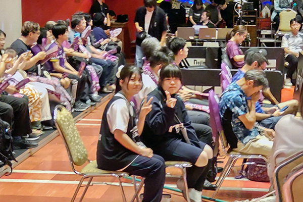今回は、Tリーグの運営ボランティアということで、昨年ご縁ができた「京都カグヤライズ」の開幕試合にお招き頂きました。当初、ボランティアの内容は受付か会場設営だと思っていましたが、なんと、試合中の「ボールパーソン」という大役を担うことになり、驚きと不安が交差するボランティアとなりました。加えて、生徒4人は卓球未経験者。「この試合って、そんなに凄いの?」と、聞いてきましたが、KBSホールのショ―アップされた会場や選手の練習風景を見て、「これ、ガチや」と呟いていました(笑)。