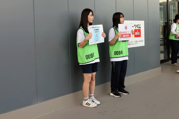 8月30日(土)サンガスタジアムbyKYOCERAで開催された京都サンガF.C.のホームゲームにて、今年2回目となる熱中症啓発ボランティア活動を実施しました。 2万人を超える入場者数のため、活動場所の外部コンコースは大勢の人であふれかえっていました。生徒たちは、人混みの中でも集中して「熱中症予防のために、水分補給してください。」と大きな声で呼びかけていました。 次の活動は9月20日(土)です。 宜しくお願いします。