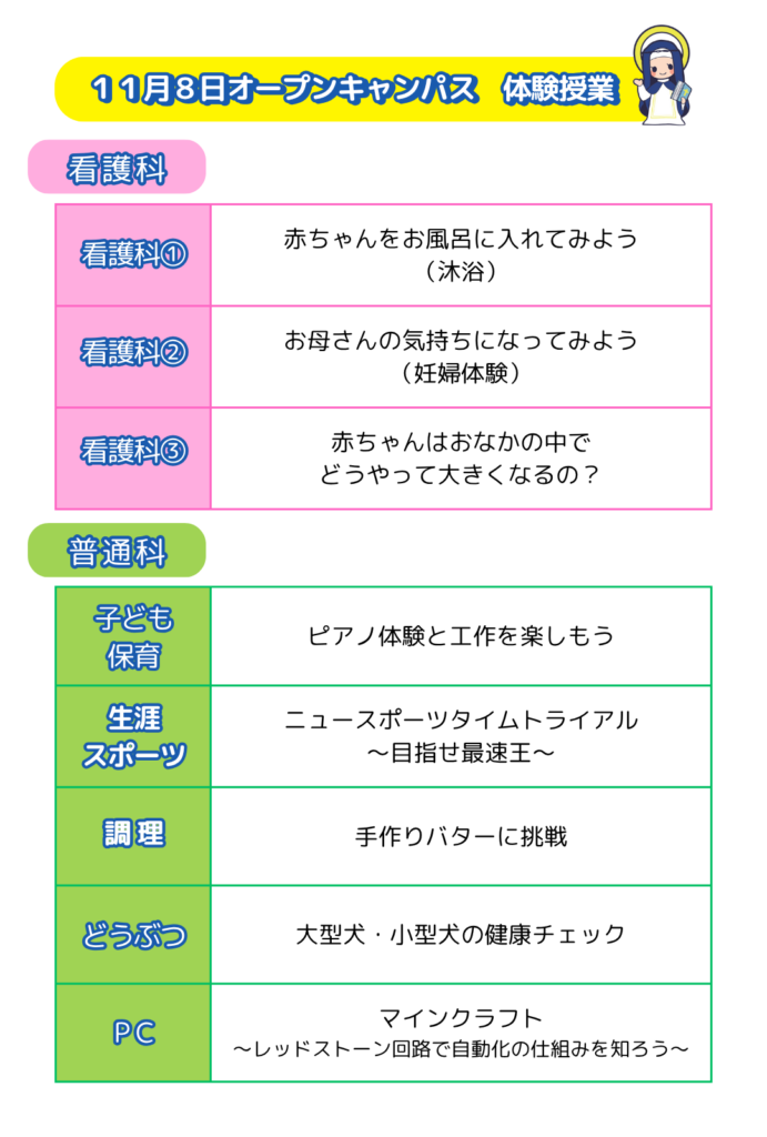 ※バレーボール部の公式戦出場が決定したため、11/8のオープンキャンパスでの実施はありません。(11/4追記)
