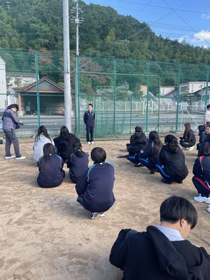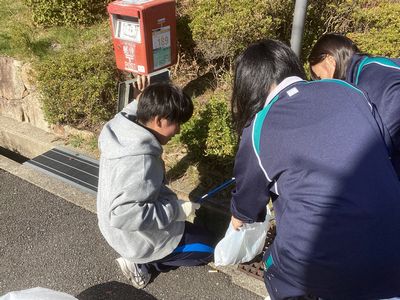 午後からは、エネルギーをしっかりチャージした生徒たちが12班に分かれてスポゴミ活動を実施。晴天のもと、先生と生徒が協力しながら校内外のゴミを拾い、地域と環境への感謝を込めて清掃に励みました。