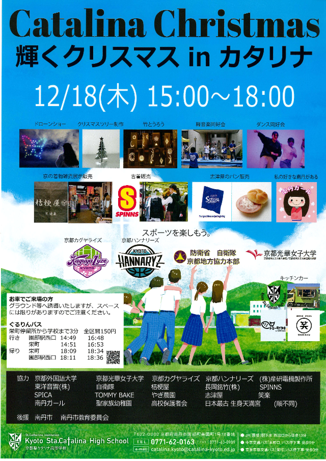 3年生普通科の「総合的な探究の時間」の集大成として、さまざまな企業やお店、プロスポーツチーム、保護者会、そして聖家族幼稚園の皆さまのご協力をいただき、「カタリナクリスマス」がいよいよ開催されます!!