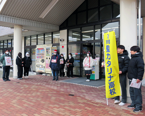 本校では、地域の皆様と共にクリスマスの喜びを分かち合い、社会貢献を目的とした活動を展開しております。地域の皆様の温かいご支援を賜りながら、心をひとつにして社会に貢献できる活動を目指しています。