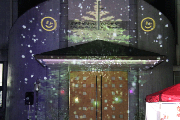 当日は、幼稚園児(聖家族幼稚園)によるかわいらしい発表から始まり、生徒が制作した迫力あるプロジェクションマッピング、さらに幻想的なドローンショーまで、多彩なプログラムが披露されました。来場された皆さまにとって、子どもたちの笑顔と光の演出が織りなす、心温まるひとときとなりました。