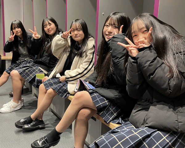VIP席も見学。座り心地の良さや高級感のある空間に、生徒たちのテンションも上昇。座席のクッションにはサンガのチームカラーである紫の糸が使われており、細部までこだわったデザインに感心していました。