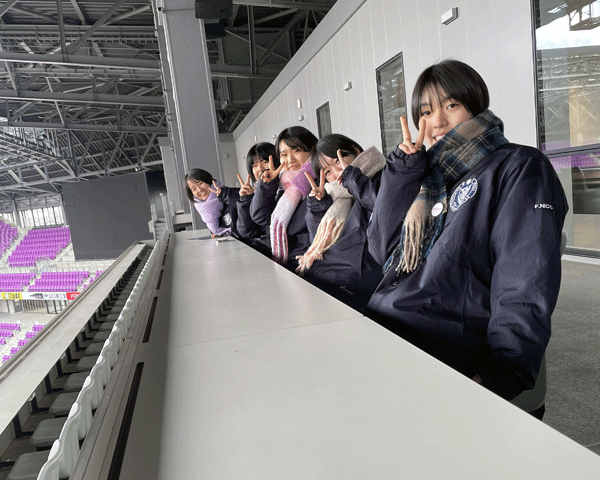 見学後には、「将来このスタジアムで働くにはどうすればよいですか。」と質問する生徒もおり、学びが進路への関心にもつながる有意義な時間となりました。
