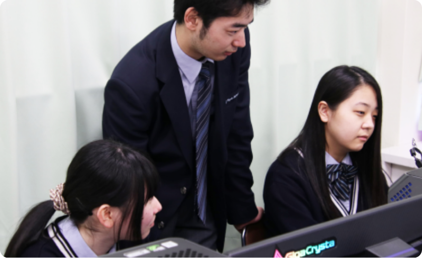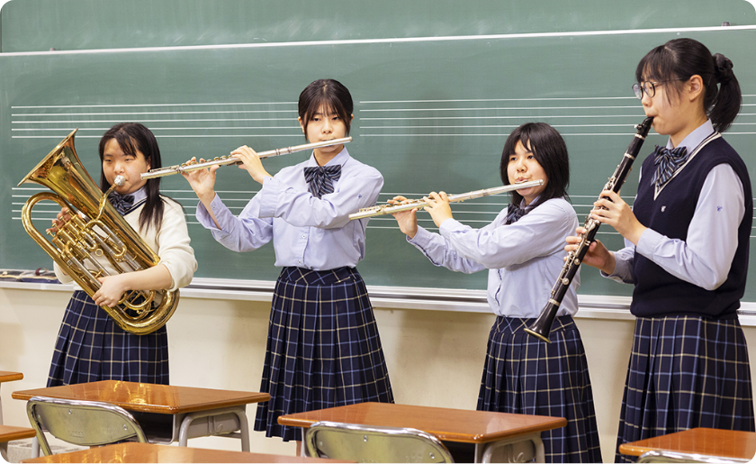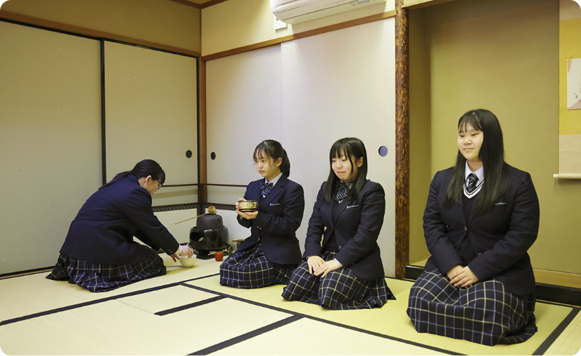 教職員・在学生が新入生の入学を祝います。聖カタリナ像が見守る中、本校ならではの入学式が行われます。いよいよ学校生活のはじまりです。