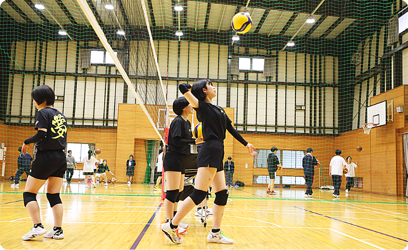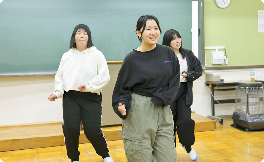 3色の縦割チームに分かれ、学年を超えてチームが団結し、競い合います。