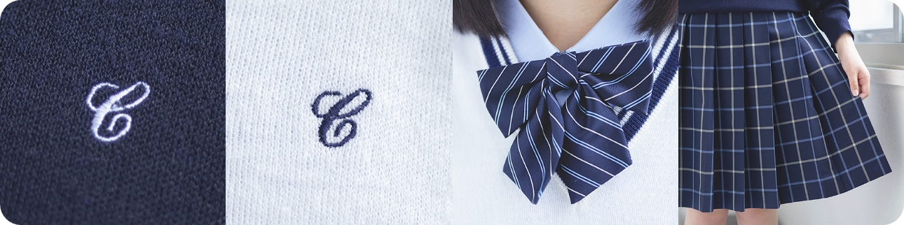 ニットはベスト(白)と長袖(紺)の2種類、リボンとネクタイも選べます。