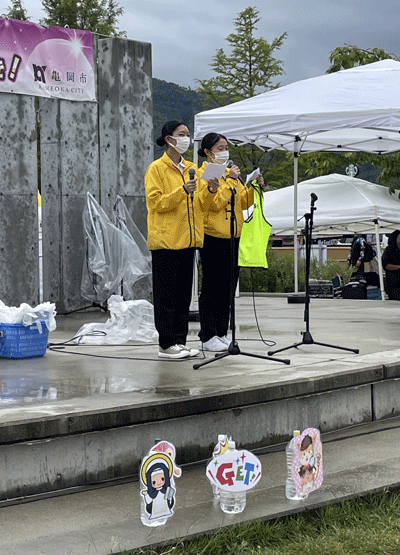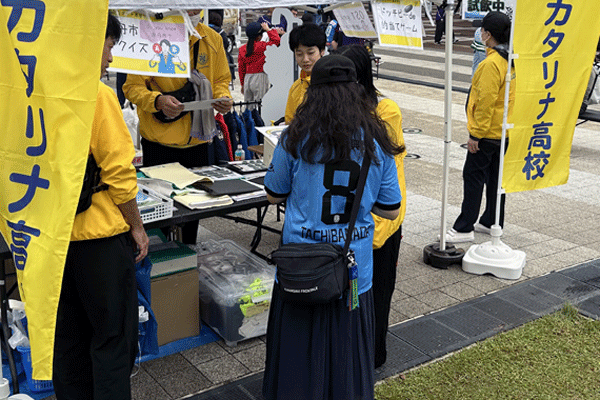 かめきたサンガ広場では、看護科4年生がOS-1の試飲を行い、普通科3年生は「南丹市クイズ」と「ドッヂビー体験」を実施しました。