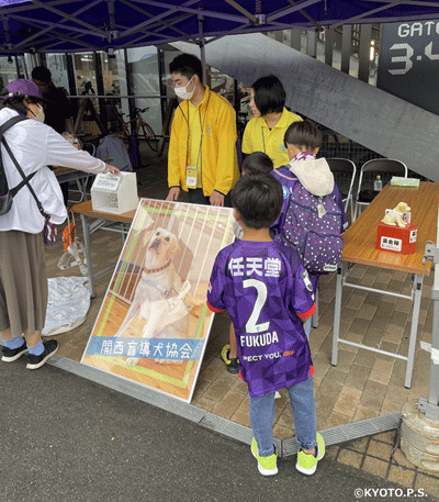 スタジアムのフレンズ広場では、関西盲導犬協会と協力して盲導犬育成募金活動を行いました。皆様からの温かいご支援により、約5万円もの募金が集まりました。盲導犬の育成は、多くの方々の協力なしには、その成立が困難です。皆様の温かいお気持ちに感謝いたします。